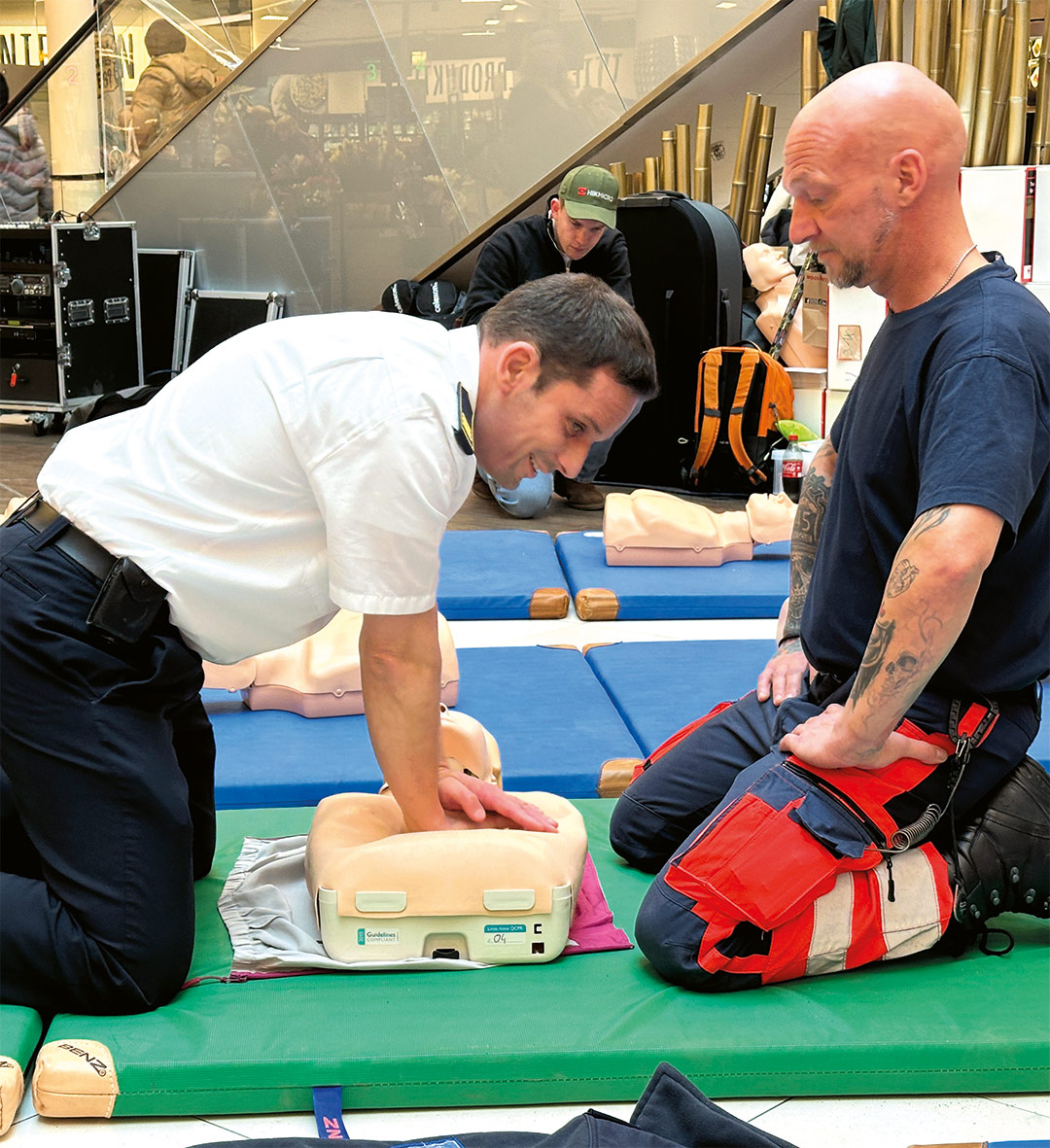 Vier Wärmeboxen, in denen die AEDs bei jeder Witterung im Freien funktionsfähig bleiben, konnten gleich am 1. Blaulichttag übergeben werden – zur Verfügung gestellt von der Sparkasse. Zuvor hatten die Retter mit Unterstützung von Besuchern der Marienplatz-Galerie bewiesen, dass sie einen 45-minütigen Reanimationsmarathon absichern können. Wie die Wiederbelebung funktioniert, erfuhren an diesem Tag alle Besucher; Schüler und Mitglieder von Jugendwehren nahmen an dem Training genauso teil wie die Gäste aus Kommunal- und Landespolitik.